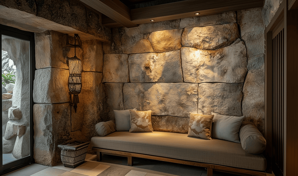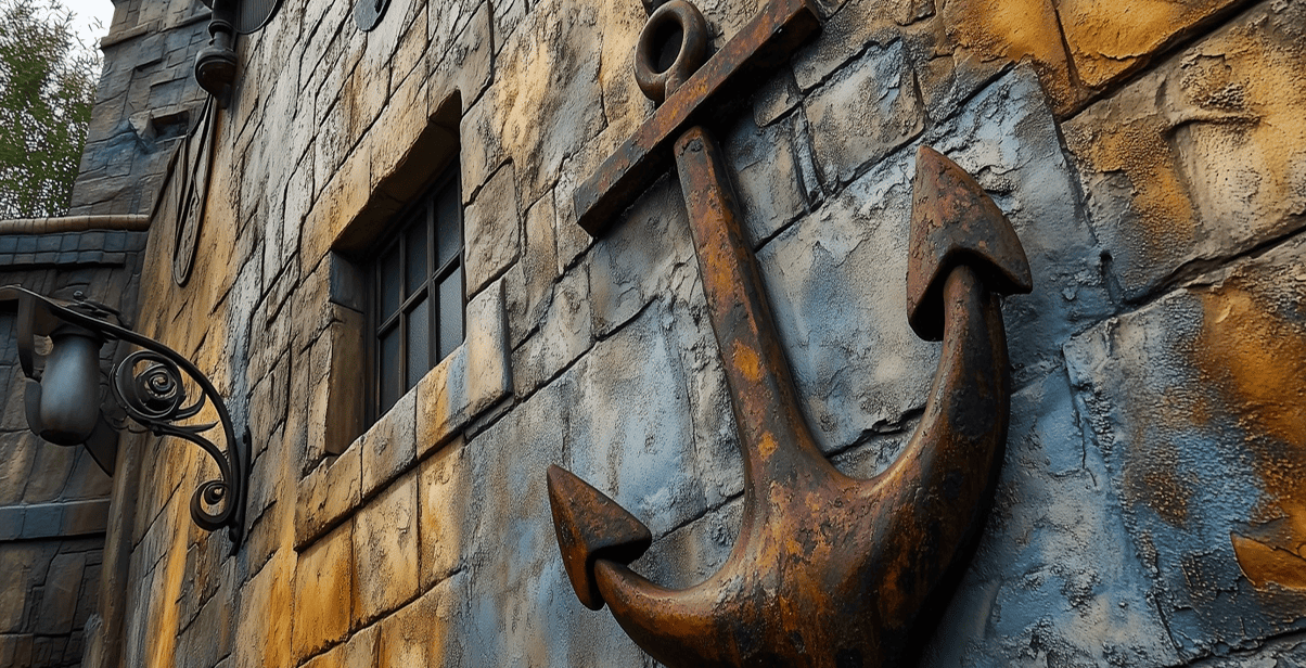 石積み・レンガ・木目・擬岩などを立体的に再現する技法です。