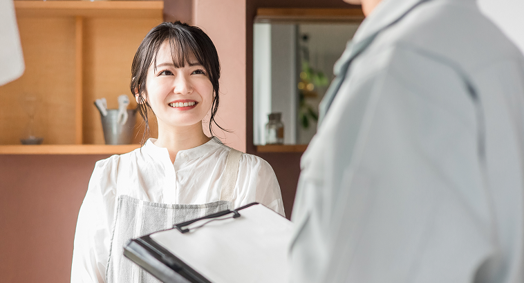 施工開始の1~2週間前に、ご近隣様へ工事開始のご挨拶をします。工事の期間や時間帯と音の出る作業、工事車両の出入りなどより細かくお伝えし、ご了解をいただきます。
